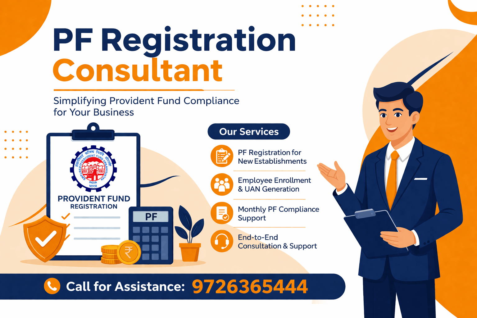 We provide complete end-to-end guidance for PF Registration Consultant to ensure your business becomes fully compliant with EPFO regulations without any delays or errors. Our expert team assists with document verification, online application filing, employer profile creation, and smooth coordination throughout the entire process. With our professional support, you can complete PF registration effortlessly and focus on running your business while we handle the compliance work for you.
